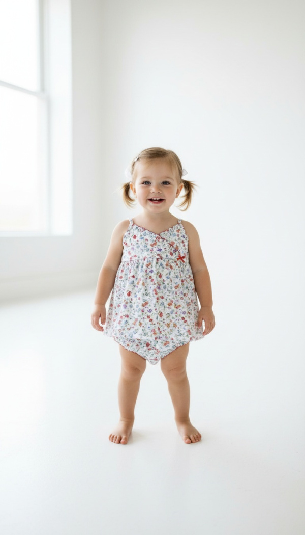 Beautiful dress for baby girls, for midsummer days or a walk in the park, includes bombacha diaper covers
