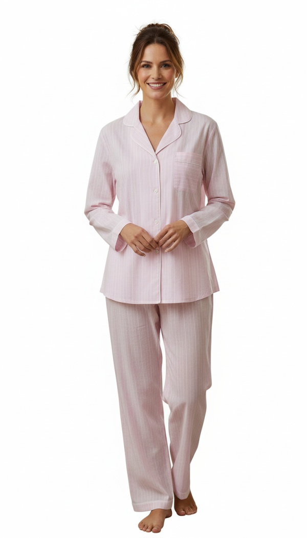 Classic sleepshirt short 36", long sleeve, chest pocket. it is a beauty pale blue sateen stripes pattern.